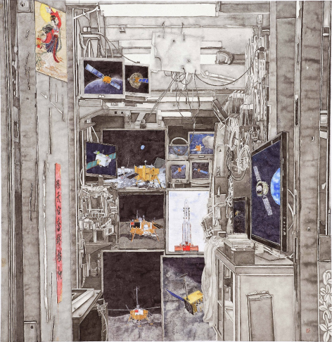 作品简介:《嫦娥奔月》这幅作品通过对古代的嫦娥奔月到当代嫦娥一号到五号的奔月,绘出国家不仅对自身文化的继承和发展,也展现出在当代环境下对科技创新的持续追求。