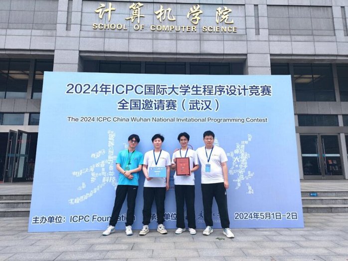 本网讯 5月2日,2024年ICPC国际大学生程序设计竞赛全国邀请赛在武汉大学举行,我校计算机学院ACM实验室成员张荣臻、张泰林、刘翔宇组成的“巴巴圣德”参赛团队勇夺国赛铜牌。