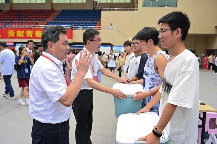 迎新期间,学校领导来到迎新现场检查指导工作,亲切看望新生。校党委书记陈向军,党委副书记、校长漆昌柱等在家校领导来到南北校区各大门、迎新接待点、学生宿舍等地,看望前来报到的新生和家长,对他们的到来表示热烈欢迎,深入了解学生住宿和生活情况,勉励新同学们相互学习、共同进步;慰问奋战在迎新一线的教职工和大学生志愿者,强调要以热情负责的态度做好迎新工作,当好新生引路人。